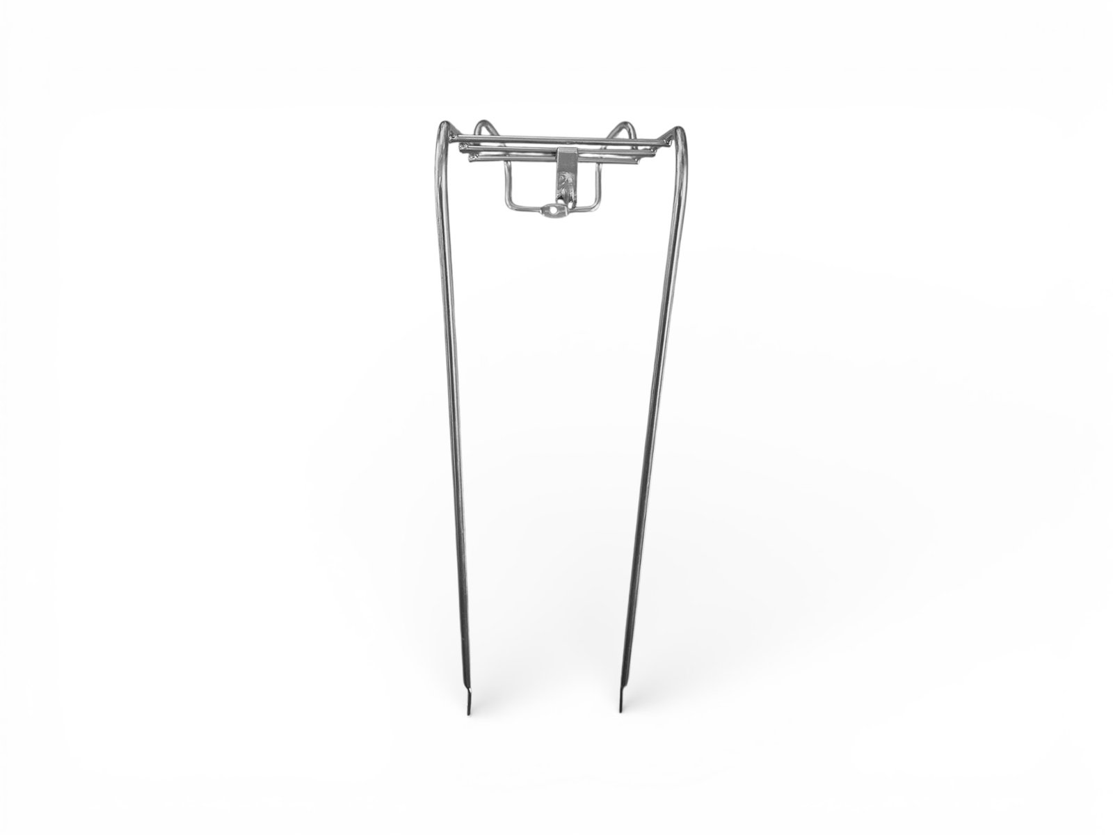 Schöner Front-Gepäckträger aus silber lackiertem Stahldraht mit einer maximalen Beladung von 5 kg.