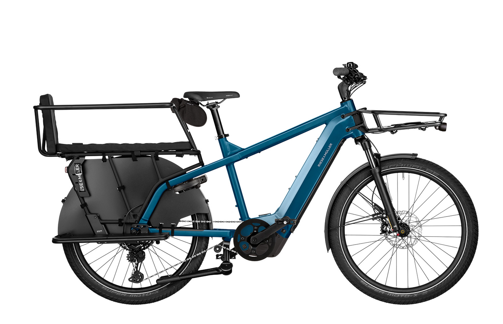 Ob ein Wochenendausflug zum See oder täglich zur Kita – das Multicharger3 nimmt alle(s) mit. Auf seinem Heck transportieren Sie mühelos Ihren Nachwuchs oder die Camping-Ausrüstung. Dabei fährt es sich so agil wie ein normales E-Bike und punktet mit Sicherheitsfeatures und Offroad-Optik.