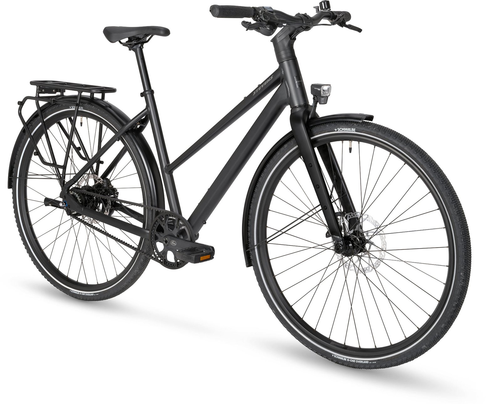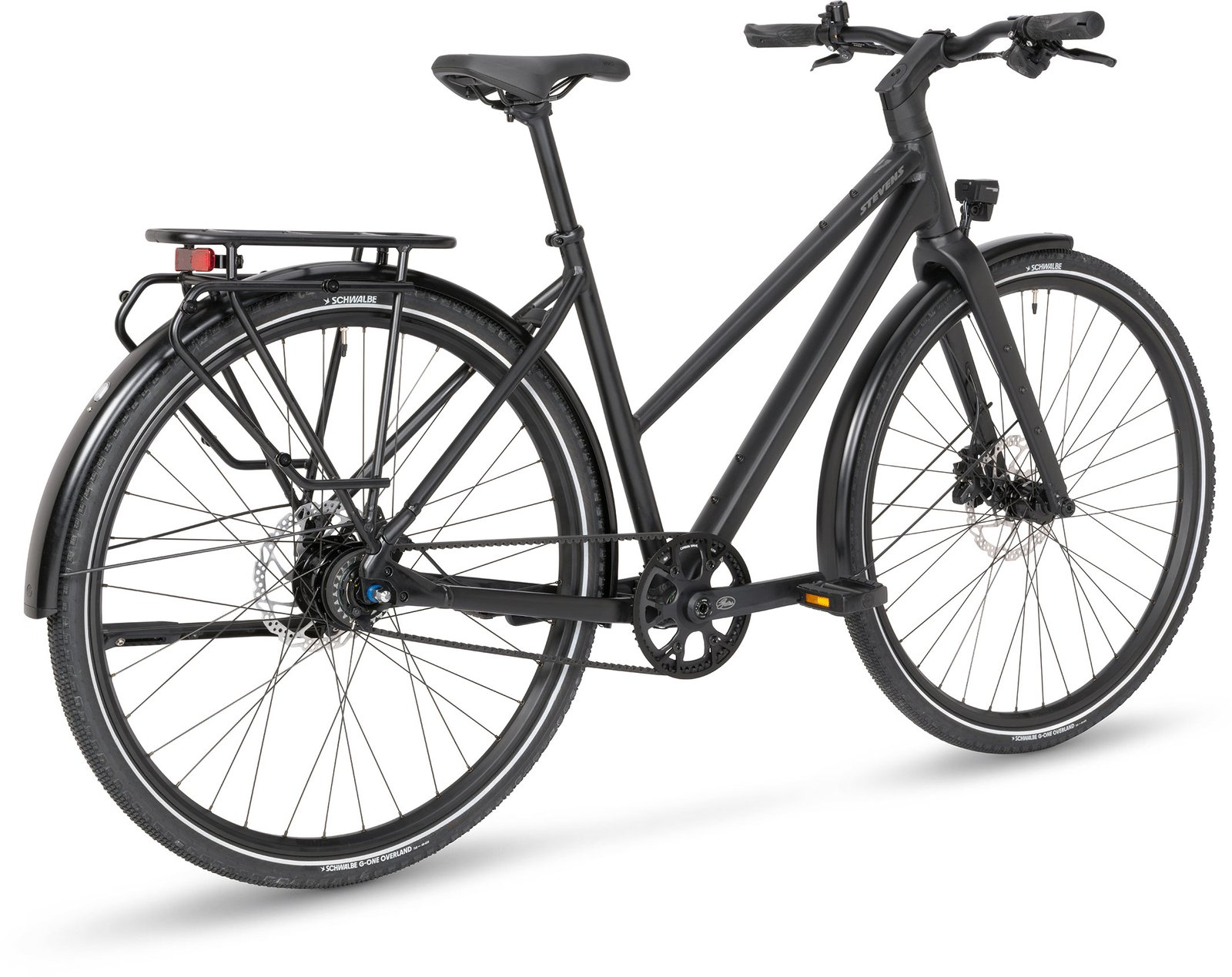 Unkomplizierter City-Tourer mit wartungsarmem Riemenantrieb. Egal ob auf Mehrtagestour mit Gepäck, beim Wochenendausflug oder im täglichen Pendelverkehr – der dynamische, schwungvolle Aluminiumrahmen in sänftigen Velvet Black und die leichte, lenkstabile Aluminiumgabel machen das Caleta 7.2 zum Inbegriff von Fahrfreude. Die Shimano Alfine 11-fach Nabenschaltung sorgt für eine zuverlässige Schaltung und den sorgenfreien Gebrauch im Alltag. Mit Gepäckträger und LED-Beleuchtung sicher und stylisch unterwegs (FEQ).