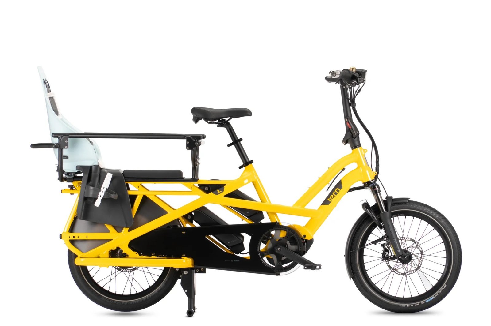 - Schnelle und einfache Montage (ohne Werkzeug) für den mühelosen Wechsel vom Kinder- zum Cargo-Modus