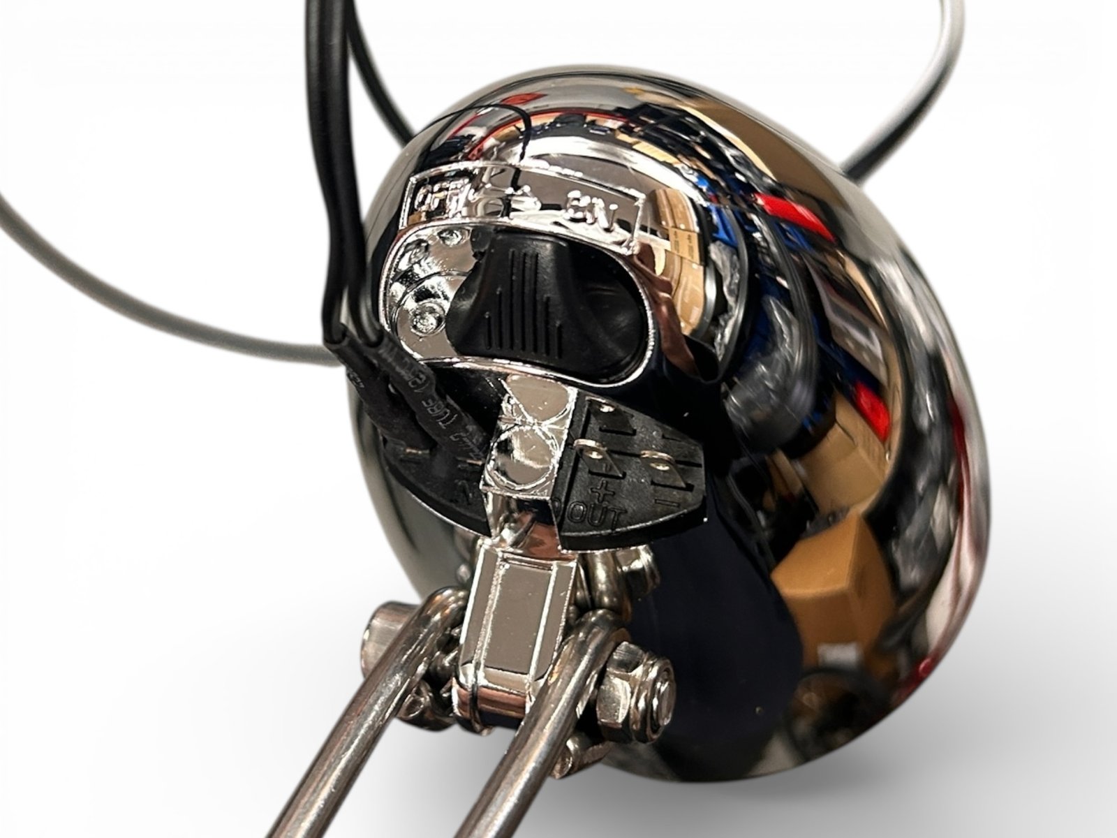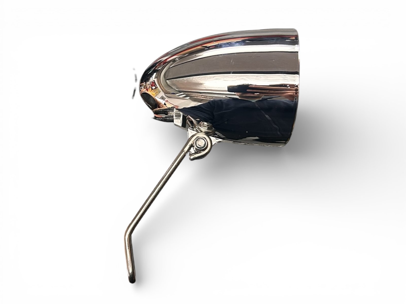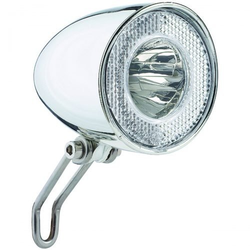 Traditioneller Fahrrad-Scheinwerfer in LED-Technik mit edler Chrom-Optik.