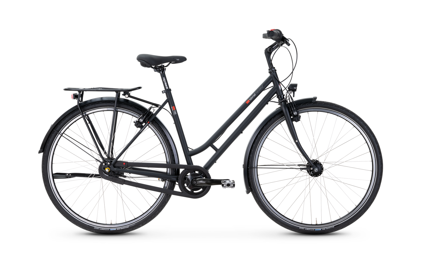 Für Langlebigkeit sorgt das Zusammenspiel des CrMo-Stahlrahmens mit der rundum hochwertigen Ausstattung. Die Scheinwerfer und Rücklicht von Busch & Müller verfügen über eine Standlichtfunktion, sodass Sie selbst dann sichtbar bleiben, wenn Sie im Dunkeln an einer Ampel stehen. So bietet das T-100 ein hohes Maß an Sicherheit, auch durch die beliebte Citizen-Reflexbereifung von Schwalbe.